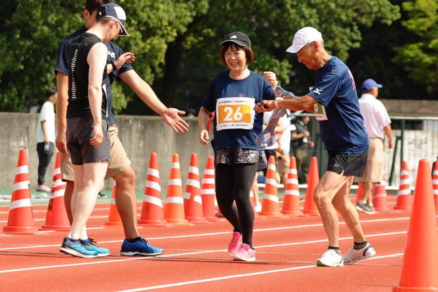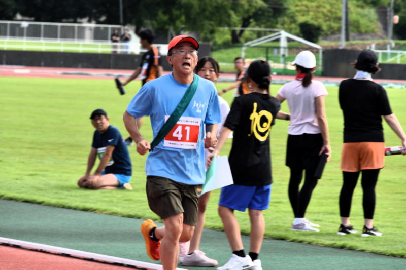今大会最高齢80歳の杉本昌夫さんが走った時には、本部席からも応援の声が!