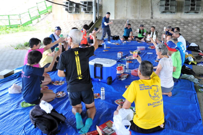 その後、大手大橋の下で「長岡雑走団」を交え慰労会を行いましたが、