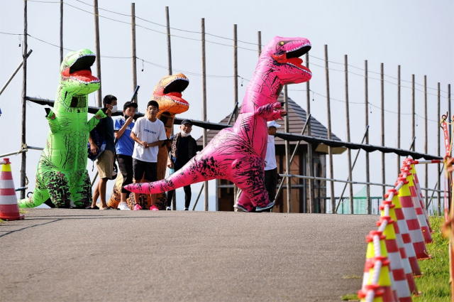 その他に「ティラノサウルス」3体がコース上で大会を盛り上げています。