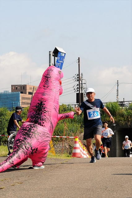 ランナーもさる事ながら「ティラノサウルス」の中は、さながらサウナ状態