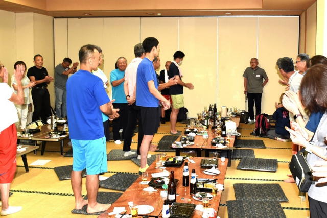 ゴールの後、お風呂で汗を流し会場を変えての交流会。