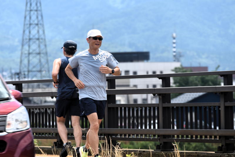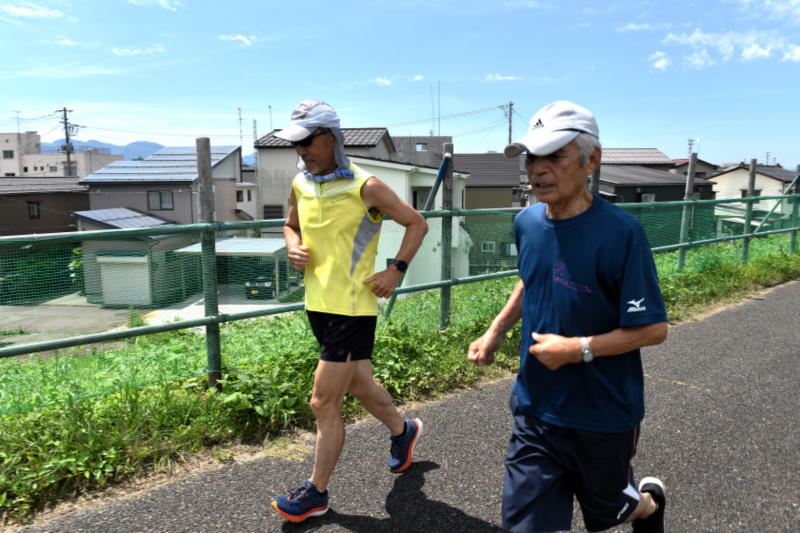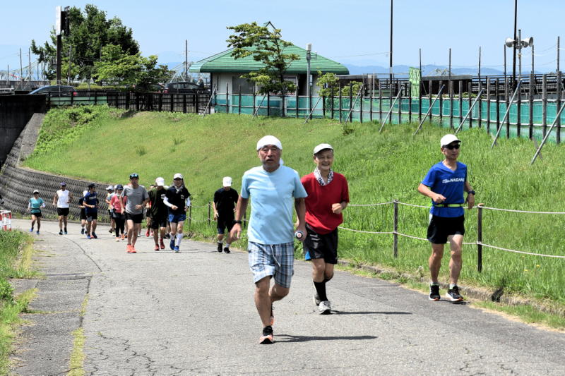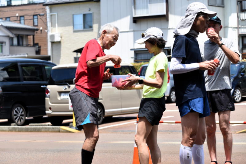 ンナーの早さで進み、長岡ランナーズの米寿ランナー "吉沢勘次" さん大先輩の