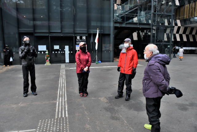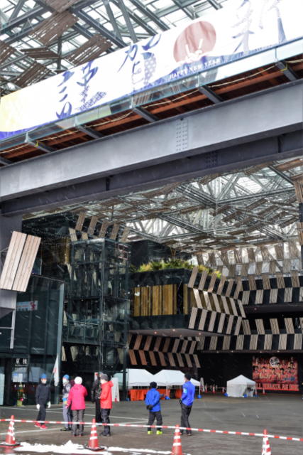 雪もなく、ポツリポツリと雨が当たる2017年の始まりです。アオーレ前に集まったメンバ
