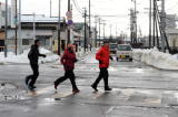 い面々と一緒に、歩道のほとんどが雪道で、ところどころ消雪によってグチャグチャして