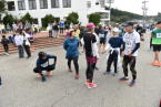清々しい秋晴れのなか、参加者全員が拳を突き上げ「エイ!エイ!オー!」の勝どきで気合の